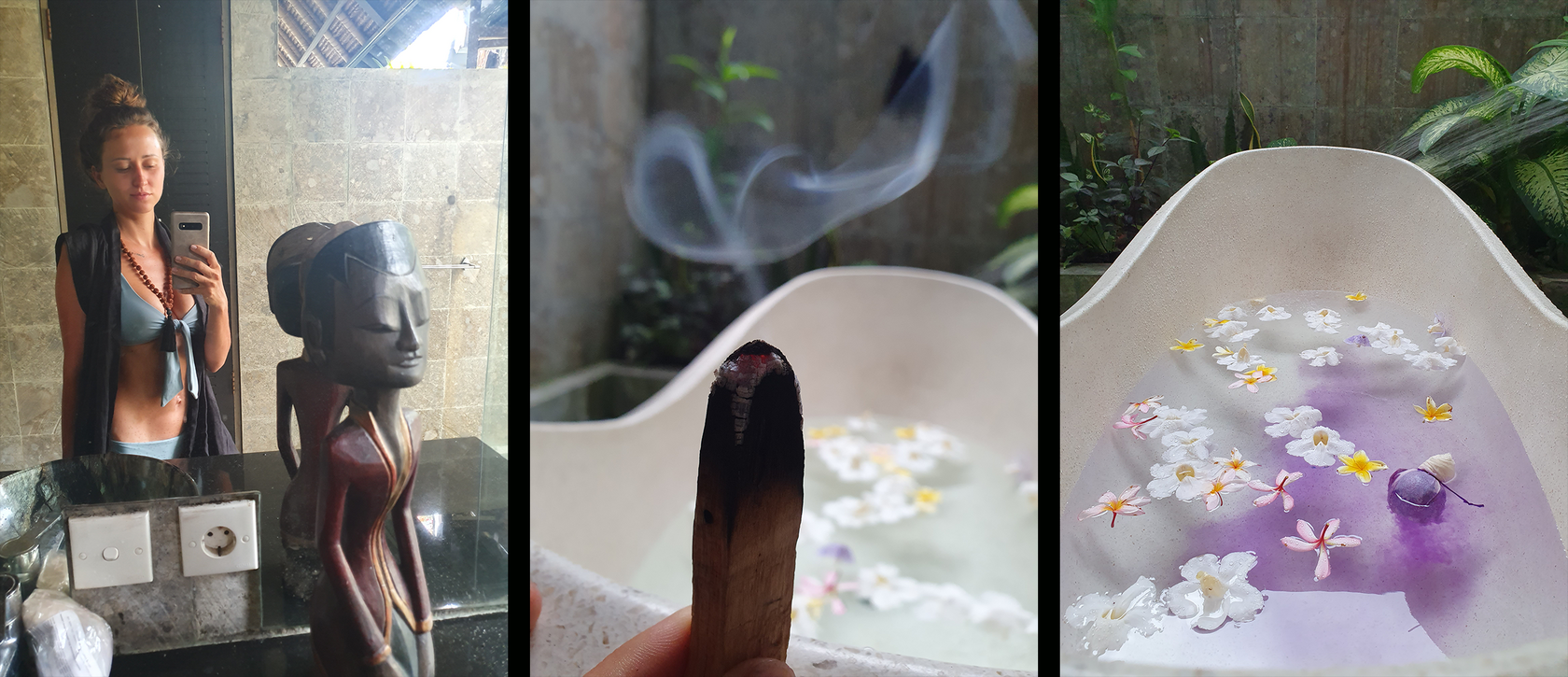 Обняв его благодарным взглядом, я отправилась в ванную, по дороге собрав благоухающие цветки франджипани. Я решила не закрывать дверь — на случай, если он решит ко мне присоединиться, включила любимую музыку, зажгла палочку Пало Санто, кинула в ванну лавандовую бомбочку и собранные цветы.
