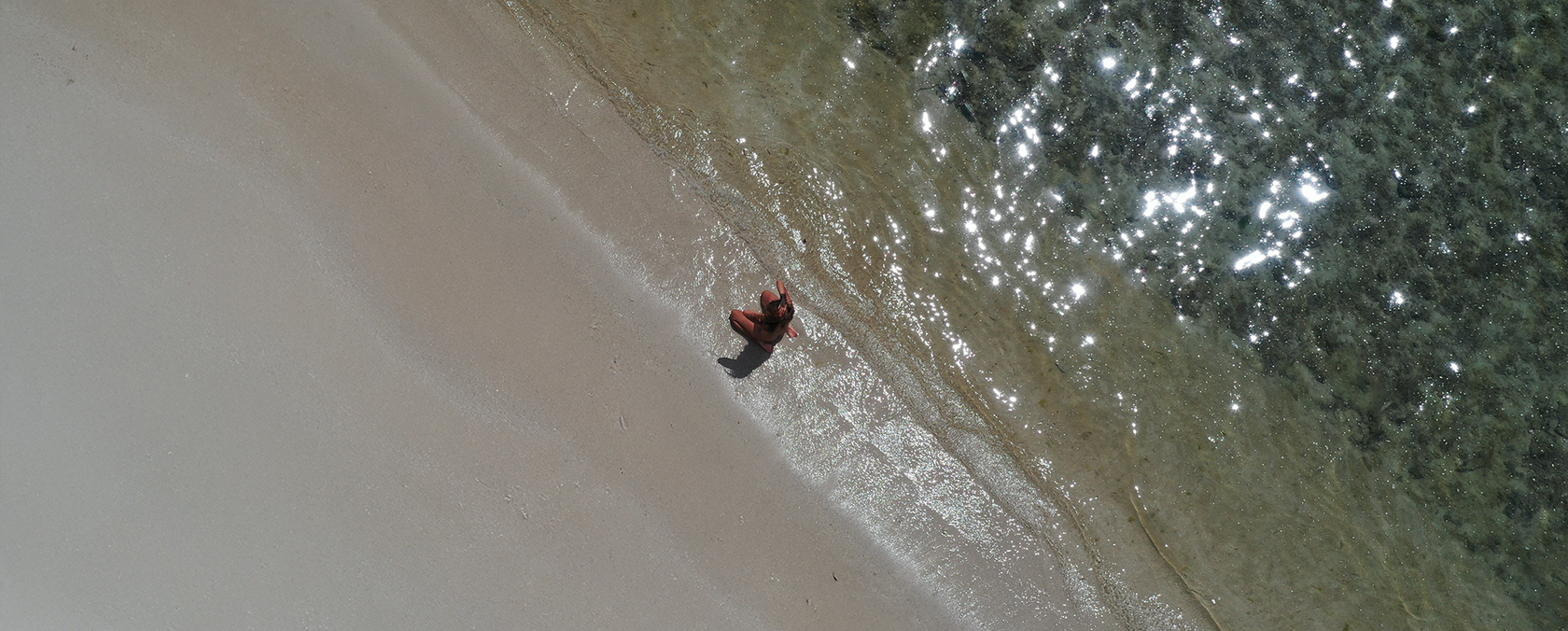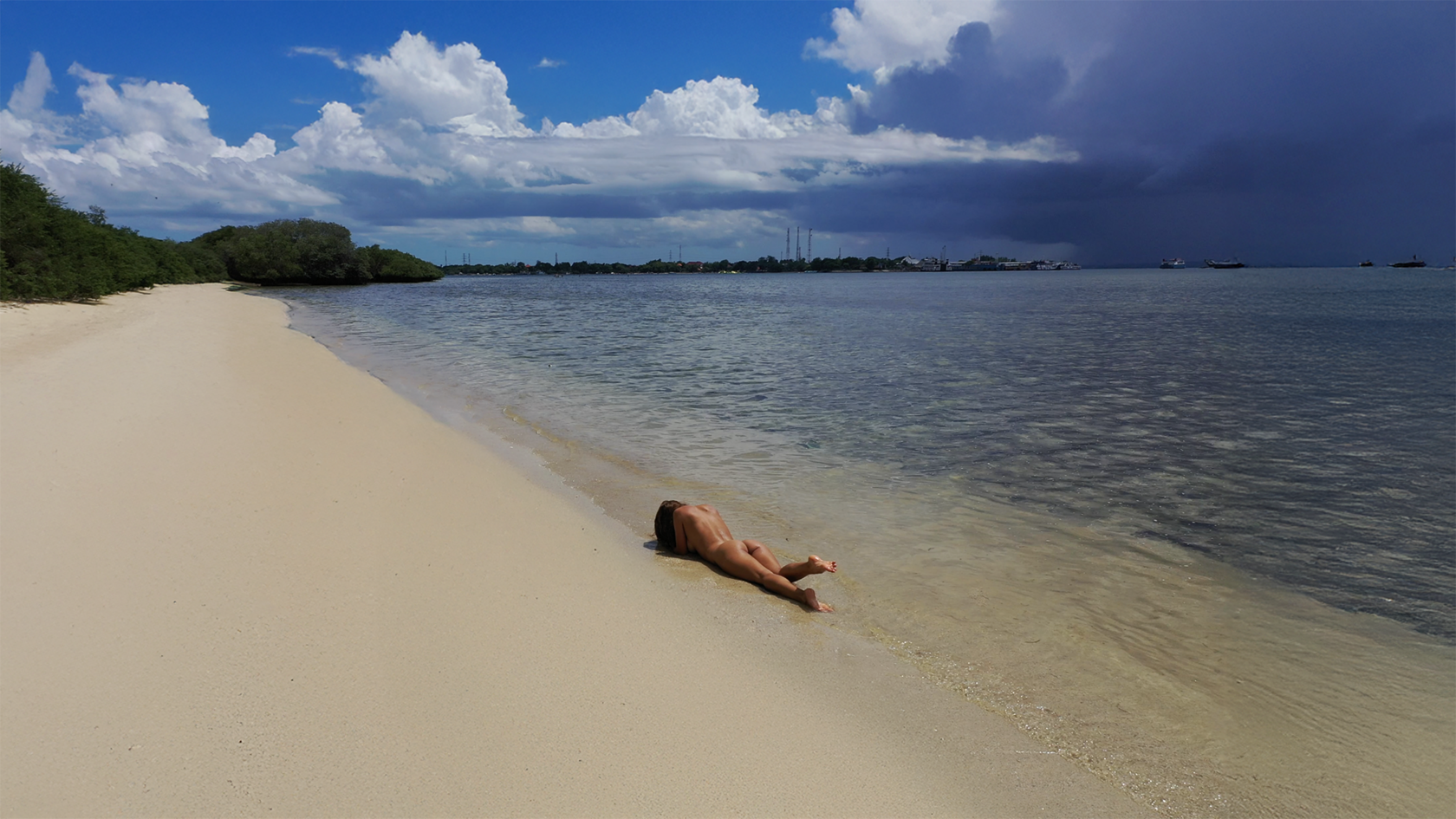 Совершенно неожиданно нашему взору открылся пустынный пляж с белоснежным песком. Как дети, наконец нашедшие клад, помеченный крестиком на карте, мы слетели с байка и побежали к воде. Я разделась и резвилась в воде, как дурочка, воюя с кусачими жуками, а Снэйк увлечённо снимал это шоу на плёночную камеру.